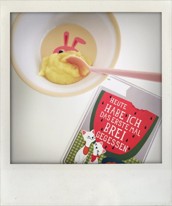 An den folgenden drei Tagen aß Frieda ihren Postbanken-Brei schon (fast) wie “eine Große”. Es schien ihr richtig zu schmecken, sie öffnete schon immer vorher ihre Futterluke. Am 5. Breitag war aber dann Feierabend. Widererwartend weigerte Frieda sich überhaupt nur einen einzigen Löffel Brei anzunehmen. Vehement ließ sie den Mund zu und meckerte als ich es immer wieder freundlich versuchte. Ich kaufte und kochte alternativ Möhrenbrei. Auch nicht! Die komplette Verweigerung nach vorhergehender Akzeptanz – wohl kein so seltenes Phänomen bei Einführung der Beikost. War der Zeitpunkt vielleicht doch noch zu früh? Wir legten erstmal eine Breipause ein und versuchten es ein paar Tage später nochmal ganz vorsichtig. Siehe da – seitdem futtert Frieda ihren Mittagsbrei mit zunehmender Wonne und in zunehmender Menge. Nach ein paar Wochen gab’ es ergänzten wir den reinen Gemüsebrei noch durch Kartoffeln. Auch die laufen sehr gut. Erfolg auf ganzer Linie.