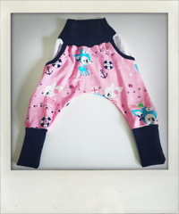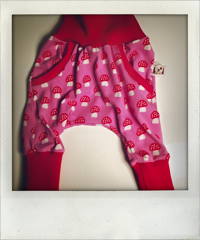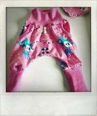 luckees3Eine 0-8-15 Baby-Pumphose war gestern, heute näht man für richtig coole, stylische, lässige Mini-Menschen die Luck*ees von nipnaps. Der Schnitt ist einfach wundervoll. Ich mag besonders die langen Bündchen an den Beinen und das “baggy” dieser Hose. Obwohl ich an den Taschen immer wieder auf’s Neue etwas frickeln muss und manchmal auch Guido um Rat fragen und sein logisches Denken erbitten muss, ist diese Hose grundsätzlich auch für Anfänger geeignet. Das eBook nämlich ist wunderbar bebildert und alle Arbeitsschritte sind einzeln erklärt. Ich bin nicht die Erste und Einzige, die von dieser Hose behauptet, dass sie süchtig mache. Inzwischen gibt es diese wunderbare Hose auch schon in der Summer-Edition. Ein paar kurze Luck*ees habe ich also auch schon genäht! Ich freue mich bereits jetzt darauf für unsere Frieda in der nächsten Größe ein paar Hosen zu nähen.