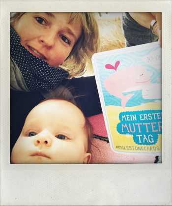 Am Sonntag war der große Tag. Unser 1. Muttertag. Niemals kommt er nochmal wieder. Aus diesem Grund mussten wir diesen Meilenstein natürlich auch mit den Milestonecards festhalten. Überraschung! Selbstredend hatte unser Mini-Menschen-Mädchen nämlich ihren Vater noch losgeschickt, um ein Muttertagsgeschenk für mich zu besorgen und schon kullerte auch irgendwie ein Tränchen vor Rührung. Logo, zu meiner Mum fuhren wir auch noch, futterten leckeren Kuchen und machten es uns richtig nett. Meine Mutter bekam übrigens ein Foto von uns 3 Mädels (Grete, Frieda und mir) in diesem Holz-Bildhalter, den ich einfach wunderschön finde und immer wieder kaufen würde. Unser Selfie hat Frieda an diesem Tag übrigens nicht gerade in beste Laune versetzt, so schaut sie nun etwas ernst…