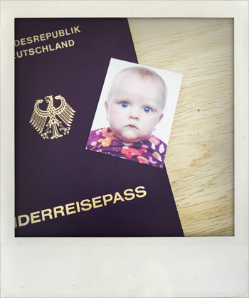 aufmamt1Wir sind ja gerade im Urlaub, ja. Und nein, bisher hatten wir überhaupt nicht auf dem Schirm, dass unser Mini-Menschen-Mädchen einen Kinderreisepass benötigt. Durch nette LaufMamaLaufMamas wurde ich erst darauf aufmerksam gemacht. An dieser Stelle echt nochmal Danke! Wer also so wie wir mit dem Auto in ein EU-Land unterwegs ist, wird natürlich problemlos ohne Kontrolle über die Grenzen kommen. Es wird aber genau dann schwierig, wenn man in eine Verkehrskontrolle kommt, in einen Unfall verwickelt ist oder mit seinem Kind ins Krankenhaus muss. Da wir nur ungern in Schwierigkeiten geraten und einen entspannten Urlaub genießen wollen, starteten wir unsere “Aktion Kinderreisepass” morgens beim Fotografen um die Ecke. Selbst die Babyfotos sollen annähernd biometrisch sein, auch wenn diese wohl nicht nach den ganz strengen Richtlinien beäugt werden. Weil Frieda dann sowieso ernst gucken und nicht lachen durfte, war das Fotografieren an sich keine enorme Hürde. Ganz fasziniert vom Fotografen und der blitzenden Technik, schaute unser Mini-Menschen-Mädchen gebannt und mit riesengroßen Augen in die Kamera. Das Resultat gleicht aufmamt2zwar eher einem Sträflingsbild, muss aber ja so sein. Passfotos für einen Ausweis sehen ja nunmal immer ein bißchen gruselig aus. Nachdem die Fotos eingetütet waren, ging es ab zum Bürgeramt in der Innenstadt. Anliegen vortragen, Wartemarke ziehen, hinsetzen und warten. Frieda im Schlepptau, damit die Servicemitarbeiterin Bild und Kind vergleichen kann. Zum Glück mussten wir nicht so wahnsinnig lang warten. Außerdem hatte Guido uns mit einem leckeren Kaffee versorgt und Frieda spielte wie eine Große mit der Motorikschleife in der Kinderspielecke der Wartehalle. Rucki-zucki war der Kinderreisepass für 13,- Euro fertig, zur Mitnahme bereit. Also konnte es nun auch wirklich bald losgehen. Oder hatten wir sonst noch etwas Wichtiges vergessen?