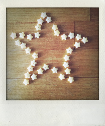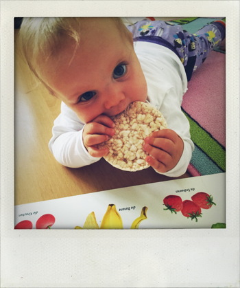 Zu Friedas Mittagsbrei, der allerdings irgendwie irgendwann zu einem frühen Nachmittagsbrei geworden ist, weil das Mini-Menschen-Mädchen vormittags so viel zwischendurch futtert (Banane, Reiswaffel oder Brötchen) ist mittlerweile einmal wöchentlich Lachs hinzugekommen, der wie gehabt mit Möhre an Kartoffel kredenzt wird. Manchmal gibt es anstatt der Kartoffel jetzt kleine Suppen-Sternchen-Nüdelchen. Sehen richtig süß aus, die Sterne. Der Dinkelbrei mit Apfelmus, der sonst immer am späten Nachmittag auf den Tisch kam, ist seit einiger Zeit zu ihrer letzten Mahlzeit des Tages geworden. Kurz vor dem zu Bett gehen wird also noch ordentlich reingeschaufelt. Nur ganz, ganz selten möchte Frieda zum Einschlafen oder kurz davor noch gestillt werden. Das abendliche Fläschchen mit abgepumpter Milch gibt es seit unserer Rückkehr aus dem Frankreichurlaub gar nicht mehr. Sowieso lege ich sie am Tag höchstens nur noch einmal an die Brust und zwar eigentlich nur dann, wenn’s bei mir etwas drückt, ziept und Milch raus muss. Falls das Mini-Menschen-Mädchen nachts aufwacht (meistens schläft sie mittlerweile durch), fordert sie hingegen immer sehr vehement die Brust ein, trinkt sich satt, dreht sich um und ratzt wieder weiter. Diese ganze Entwicklung ist mal wieder der Beweis, dass sowieso alles zu seiner Zeit kommt. Es kommt, wie es kommen soll. Nichts muss man trainieren, üben, anerziehen (wenn wir hier überhaupt von erziehen sprechen können). Jeder Mini-Mensch entwickelt sich in seinem eigenen Tempo. Druck – den andere Leute oder man sich selbst macht – sind kein guter Ratgeber. Im Idealfall entscheidet doch das Kind wann es was isst. Frieda futtert total gerne. Ganz die Mama eben. Irgendwelche Unverträglichkeiten gab es bisher noch gar nicht. Das soll bitte auch so bleiben!