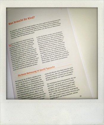 Am Anfang steht ja immer die große Frage, ob das alles überhaupt so richtig ist. Kann, soll, darf man überhaupt sein kleines Kind in Obhut geben? Ist das zuträglich für seine Entwicklung oder schade ich ihm damit? Wie so oft gibt es x-verschiedene Stühle und Meinungen. Wie wird die Trennung sein. Egal, ob das Mini-Menschen-Kind 1, 2 oder 3 Jahre ist. Sich voneinander zu lösen ist oftmals nicht nur für den Nachwuchs schwer. Auf all’ diese Fragen gibt es keine allgemeingültigen Antworten, denn was zu unseren Wünschen und den Bedürfnissen unseres Kindes passt, könnte für euch ein Debakel sein. Zu guter Letzt möchte aber jeder die absolut richtige Betreuung finden und diese kann eben für jede Familie anders aussehen. DIE perfekte Betreuung gibt es somit nämlich nicht. Genau das ist auch der Opener des Buches. Was gibt es und was passt zu uns? Was bin ich für ein Typ, was ist mir wichtig? Struktur? Empathie? Spontanität? Was ist denn nun wirklich ein Must-Have in Kita, Kindergarten oder bei einer Tagesmutter? Mitbestimmung oder flexible Betreuungszeiten? Selber Kochen oder Essensservice? Waldorf, Montessori oder städtische Einrichtung? Nicht zu vergessen: Was braucht mein Mini-Menschen-Kind überhaupt? Ist es eher der Abenteurer und braucht es viel freies Spiel und frische Luft? Ist es Typ “Schlaukopf”, beschäftigt sich lieber viel alleine in einer ruhigen Ecke mit Puzzeln und Wissensbüchern? Oder haben wir eher einen sehr angepassten und pflichtbewussten Nachwuchs? Die Autorin beschreibt all’ diese unterschiedlichen Menschentypen und beim Lesen schmunzelt man nicht nur einmal über die treffenden Beschreibungen, die der eigenen Person am nächsten kommen. Ich habe mich und Guido total oft wiedererkannt (natürlich sind ganz verschiedene Typen – wie soll’s auch anders sein…)