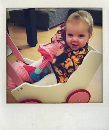 Natürlich gab’ es (eigentlich) viel zu viele Geschenke. Das waren aber alles Dinge, die ich mir eher für Frieda wünschte. Außerdem sind die meisten Spielsachen schon sehr vorausschauend angeschafft. Im Moment kann sie vielleicht noch nicht ausdauernd mit einigen der Sachen spielen, aber die Zeit wird kommen, denn sie rast dahin. Also haben wir so manche Kleinteilchen aussortiert und erstmal weggelegt. Sowieso handhaben wir es gerne so, dass Frieda nicht ständig Zugang zu ihrem gesamten Krempel hat, sondern wir tauschen immer mal wieder etwas aus.