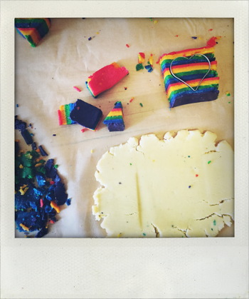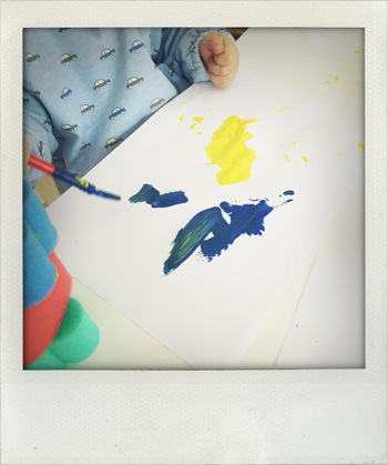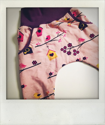 Der vergangene Sonntag war hier in Köln wieder mal so ein Regentag. Wir haben unseren Tag zu Hause aber trotzdem sehr genossen und bei uns kam überhaupt nicht das Gefühl der Langeweile auf. Einen Lagerkoller bekamen wir auch nicht. Ganz im Gegenteil. Wir haben ganz viel gemacht und geschafft und unser Mini-Menschen-Mädchen war mittendrin statt nur dabei. Es war wunderbar! Neben dem obligatorischem Haushaltskram wie Waschen, Saugen, Bad putzen und so weiter, haben wir mit Frieda Regenbogenkekse gebacken und frisches Apfelmus eingekocht. Wir haben mit Temperafarben und Wachsmalern auf Papier und auch mit Kreide an der Tafel gemalt. Wir haben Seifenblasen steigen lassen, getobt, gespielt, gesungen und gelacht. Gekuschelt, Mittagsschlaf gemacht und zwischendurch auf dem Balkon frische Luft getankt. Und es blieb’ sogar endlich mal wieder Zeit für mich an der Nähmaschine. Schon seit längerer Zeit habe ich ja hier den absoluten Frühlingsboten-Stoff liegen. Ein kleiner Teil dieses wunderschönen Jerseys ist zu einer neuen Hose (natürlich wieder eine Luck*ees) geworden. Wir sind absolut verliebt.