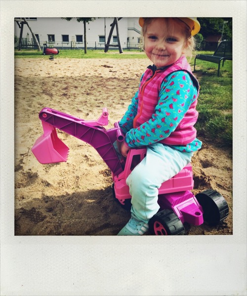 pink2Als unsere Frieda diesen Bagger von Simm Spielwaren zum ersten Mal sah, leuchteten ihre Augen. “Mama, so einen habe ich mir schon immer mal gewünscht!” waren die dazugehörigen Worte. Und tatsächlich. Welches Kind wünscht sich nicht so einen “Starken Riesen”, mit dem man nicht nur spielen, sondern auf dem man richtig sitzen und ihn bedienen kann, als wäre man ein echter Baggerführer? Frieda jedenfalls schwang sich auf die Sitzfläche des 70cm langen Gefährts und war kaum zu bremsen. Ganz intuitiv und als hätte sie nie etwas anderes gemacht, bewegte sie den gesamten Baggeraufsatz mit samt seinem Baggerarm und der Schaufel. Wie bei einem richtigen Bagger ist auch eine Drehung kein Problem. Heben, Laden, Drehen und Graben. Schnell haben die Kids “den Dreh” raus und dann ist das Graben eines Loches mit einer Tiefe von 13 cm möglich. Wahnsinn, oder? Die Baufahrzeuge der Serie LENA® Starke Riesen überzeugen uns als unverwüstliche Multitalente mit vielfältigen Stärken und großem Einsatzgebiet. Besonders schön ist für unsere Frieda aber tatsächlich der Starke-Riesen Bagger in pink. Sie sind für Drinnen und Draußen geeignet, besonders aber natürlich für den Sandkasten oder den Garten.