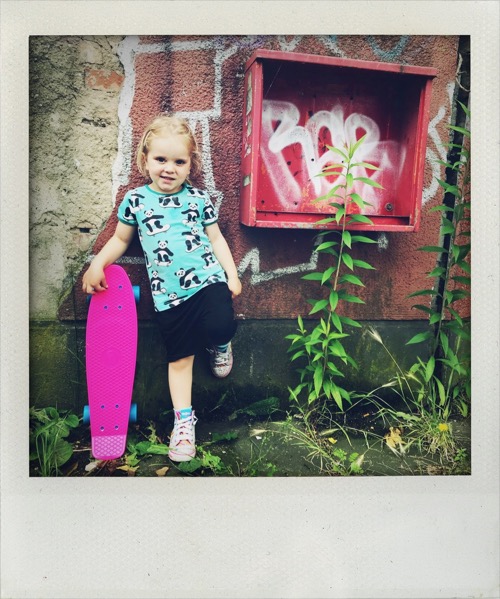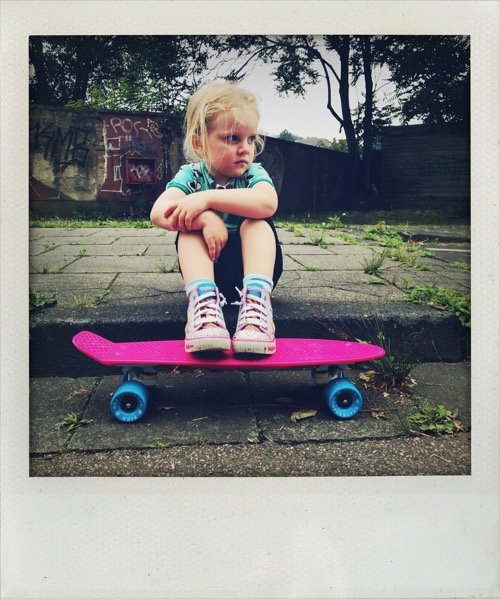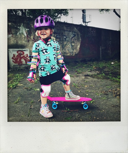 Ja, wir wussten, dass unsere Frieda sich wahrscheinlich nicht aufs Board stellen und losfahren würde. Wir wussten auch, dass sie in ihrem Alter noch nicht perfekt das Gleichgewicht halten können würde. Wir wussten aber auch, dass sie ohne großen Frust Dinge übt, die sie können möchte und dass sie kein sehr riskiofreudiges Kind ist und irgendwelche Stunts hinlegen wird. So begaben wir uns vor ein paar Wochen auf die Suche nach einem geeigneten Skateboard. Nach der Recherche im Internet haben wir uns sofort gegen ein günstiges Kinderskateboard entschieden. Guido sagt immer so schön: “Das kann man weiter schmeißen als benutzen!”. Recht hat er. Es sollte ja nunmal ein Board sein, mit dem sie (irgendwann) wirklich gut fahren können sollte. Relativ schnell landeten wir dann bei einem sogenannten Pennyboard. Diese Boards sieht man nicht in Skaterparks, denn sie eignen sich nicht für Tricks, sondern ähneln vom Aussehen eher einem Longboard und sind schlichtweg ein Verkehrsmittel, um von A nach B zu cruisen. Selbstverständlich kauften wir auch eine komplette Schutzausrüstung und der Helm ist ja ohnehin ein Musst Have. Und so cruist Frieda nun also los – mehr oder weniger zumindestens. Aber sie übt. Zwar nicht jeden Tag, aber immer mal wieder und sie hat Freude daran. Warum also nicht ein Skateboard mit 3 1/2. Wir sagen unserer Frieda in solchen Fällen jedenfalls nicht: “Dafür bist du noch zu klein!”.