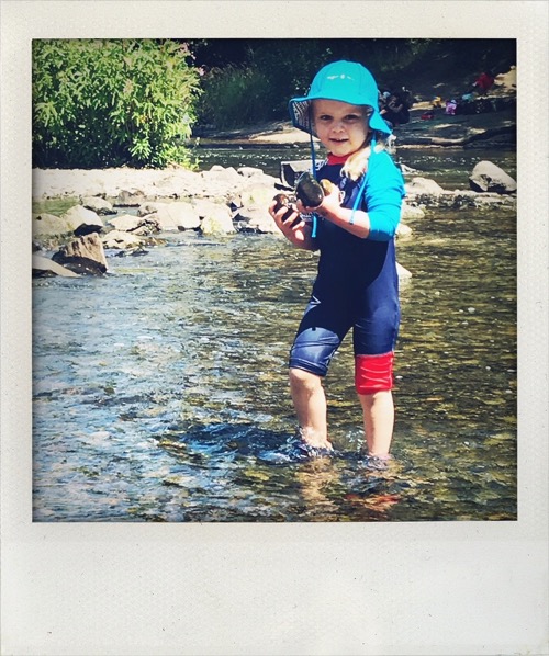 ANZEIGE Der diesjährige Sommer in Deutschland ist doch der helle Wahnsinn, oder? In Köln ist es seit Wochen über 30°C. Wenn man sich nicht gerade im eigenen Haus verschanzt, alle Rollos runterzieht und der Dinge harrt, die da kommen, braucht man unbedingt Wasser. Ohne Erfrischung ist es gerade nirgendwo auszuhalten. Da wir jetzt nicht so die Freibad-Menschen sind, sondern den Wasserspaß in der Natur bevorzugen, zieht es uns bei so einer Hitze eher an Bäche und kleine Flüsse. Es ist natürlich nicht immer ganz so einfach passende Stellen für einen Planschspaß zu finden, an dem man sich auch ganz offiziell aufhalten darf, der der Natur und den Tieren in ihrem Lebensraum durch die Anwesenheit nicht schadet und der auch für Kinder geeignet ist. Der Rhein ist zwar super schön, aber zum Baden ein absolutes NoGo – selbst für uns Erwachsene, die wir gute Schwimmer sind. Meistens sind Orte, an denen man einen Tag lang in der Natur planschen kann, echte Geheimtipps, die dann per Mund-zu-Mund-Propaganda an Freunde und Bekannte weitergetragen werden. So erfuhr ich vor ein paar Wochen von einer schönen Badestelle an der Agger in unserer Nachbarstadt Troisdorf und so machten wir uns an einem super-sonnigen Sonntag auf zum Chillen, Planschen und Spielen mit lieben Freunden. Einfach perfekt für unsere heißen Temperaturen in Köln.