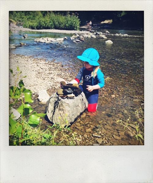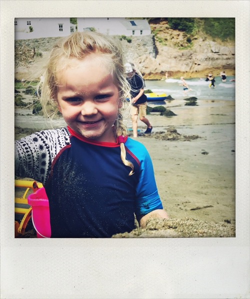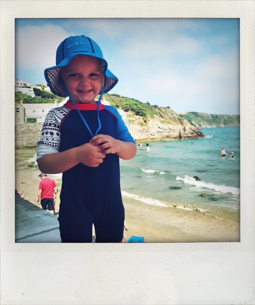 Jetzt gerade sind wir aber ja gar nicht in Köln, sondern in Cornwall in England. Hier ist seit unserer Ankunft vor 1 1/2 Wochen fantastisches Sommerwetter, so wie man es sich besser nicht wünschen kann. Ständig eine frische Brise vom Meer, Sonne satt, aber nie viel wärmer als 25°C. Für uns der absolut perfekte Sommerurlaub auf dem Campingplatz. Wir sind den ganzen Tag inmitten dieser wundervollen Natur, machen kleine Ausflüge in die naheliegenden Städte und setzen uns aber auch gerne mal einen ganzen Tag lang an den Strand, schwimmen im Meer, buddeln im Sand und bauen Burgen und sammeln Muscheln oder Steine. Nicht nur für einen Tag an der Agger, sondern auch für den Strandurlaub braucht man mit Kids so ein paar Dinge. Jede Familie ist anders und jede hat etwas andere Bedürfnisse für einen Tag am Bach oder am Strand. Im Internet gibt es viele Listen, was bei anderen Familien so in die Strandtasche wandert. Sonnencreme ist für uns mega wichtig. Nicht nur am Strand. Wir nutzen tatsächlich die neue Kinder-Sonnencreme-Serie von Weleda die wir vor einiger Zeit als PR-Sample zugeschickt bekamen, und sind von ihr mehr als begeistert. Ganzheitliche Naturkosmetik ohne Zusatzstoffe ist uns schon sehr wichtig. Guido und auch ich haben zum Teil empfindliche Haut und vertragen nicht per se alles gut. Inzwischen benutzen wir beide ebenfalls den Sonnenschutz von Weleda. Besonders toll finden wir, dass sie einen Sofort-Wirkschutz hat und nicht unbedingt 30 Minuten vor dem Aufenthalt in der Sonne aufgetragen werden muss. Was muss sonst noch mit? Klar, Handtücher und Picknickdecke, Sand- und Wasserspielzeuge, aber auch mal ein Buch o.ä. zum Ausruhen, Snacks und Getränke. Wir breiten unsere Decke zwar immer im Schatten aus, aber nehmen auch gerne mal zusätzlich unsere Strandmuschel mit, die auch Schatten spendet. Leider heizt es sich unter Strandmuscheln ja auch gerne mal auf und so bevorzugen wir eher “natürlichen” Schatten unter Bäumen oder hinter Büschen und großen Felsen. Mit dabei sind immer Friedas Outdoor-Sandalen von Keen, die ich euch ja bereits vorgestellt habe. Mit ihnen geht Frieda auch ins Wasser und so braucht sie nicht noch extra Badeschuhe. Zusätzlich zu gutem Schuhwerk ist für uns hochwertige Schwimmkleidung und ein guter Sonnenhut und erlässlich. Bereits im zweiten Jahr trägt Frieda nun den Swim- und Sun Jumpsuit von unserer Lieblingsmarke ISBJÖRN und wir wollen ihn keinen Augenblick missen.