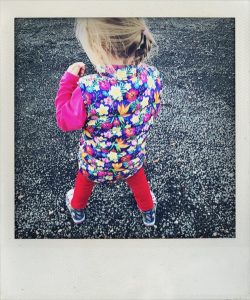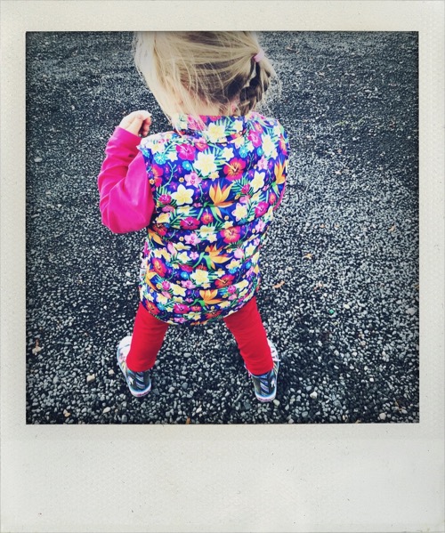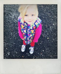 Frieda und ich haben uns nämlich unsterblich in das Muster “HawaiiFlowers” mit den hawaiianischen Blumen verliebt und so wie ich das im Babauba-Onlineshop sehe, sind davon noch Kleidungsstücke in mehreren Größen erhältlich. Obwohl wir noch nie auf Hawaii waren, habe ich beim Anblick der Sachen sofort die Schönheit der hawaiianischen Landschaft vor Augen und fühle fast ein bißchen dieses berühmten Aloha Spirits. Dieses Muster MUSSTE bei uns einziehen und darf nun die triste Jahreszeit etwas aufpeppen. Frieda trägt auf den Bildern ihr Langarmshirt HawaiiFlowers, das Kuscheljäckchen HawaiiFlowers und dazu eine rote Skinnypants – eine dieser tollen unifarbenen Hosen aus der “Unten Uni”-Kollektion. Friedas ganz besonderes Lieblingsstück ist aber die BabaubaVest HawaiiFlowers. Sie sieht nicht nur super-mega aus, sondern ist durch ihren Aussenstoff extrem pflegeleicht und langlebig. Außerdem ist sie unglaublich leicht, dünn und warm! Unsere Frieda will kaum noch etwas anderes anziehen.