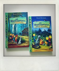 Ziemlich glücklich waren Frieda und ich, als wir entdeckten, dass bereits noch zwei weitere Bände der Blaubeerdetektive erschienen waren und noch glücklicher waren wir, als uns der dtv-Verlag die beiden Teile als Rezensionsexemplare zuschickte. Im zweiten Band der Blaubeerdetektive – Achtung Geisterelch! geht das Gerücht um, dass sich ein seltsamer Elch am Ortsrand rumtreibt, sich aber im Nebel auflöst, sobald man sich ihm nähern will. Ein Geisterelch also, der viele Touristen anlockt und somit vor allem Geld in die Kasse eines Dorfbewohners spült. Mit kriminalistischer Feinarbeit, ohne übernatürliches Gedöns, aber mit Geduld und Beobachtungsgabe, finden die fünf Freunde heraus, wer oder was dahintersteckt. Mega spannend, wieder irre humorvoll und für uns genauso großartig wie der erste Band. Der dritte Teil der Blaubeerdetektive und die Jagd auf den Meisterdieb lässt den Leser zunächst vermuten, dass eine ganze Diebesbande ihr Unwesen im kleinen finnischen Dorf Kaninkorva treibt, denn ein Einbruch jagt den nächsten. Seltsam aber, dass meistens Kleinigkeiten gestohlen werden und nach ein paar Tagen wieder auftauchen. Die Blaubeerdetektive lösen aber natürlich auch diesen prekären Fall. Einfach toll.